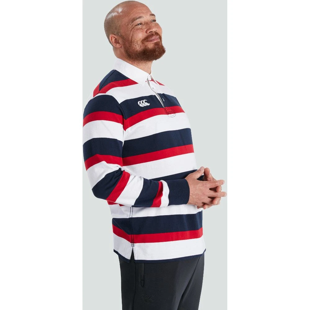 The Canterbury Men’s Jersey Top is made with special performance features. A classic relaxed fit creates a simple yet stylish appearance. The embroidered Canterbury logo and side seam vents with traditional triple bar tack detail and Herringbone tape at the placket make you look stylish. It’s made of 60 percent cotton, 40 percent polyester, and a rubber button, so you can wear it casually and comfortably.