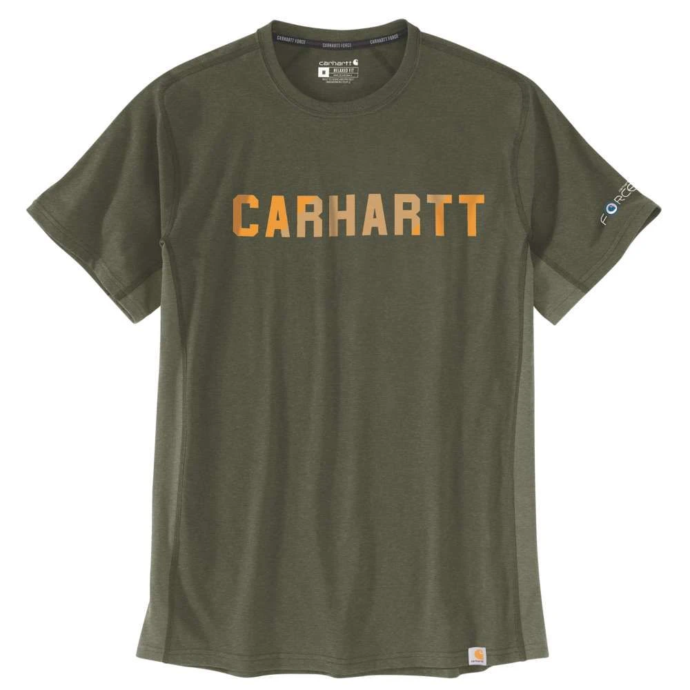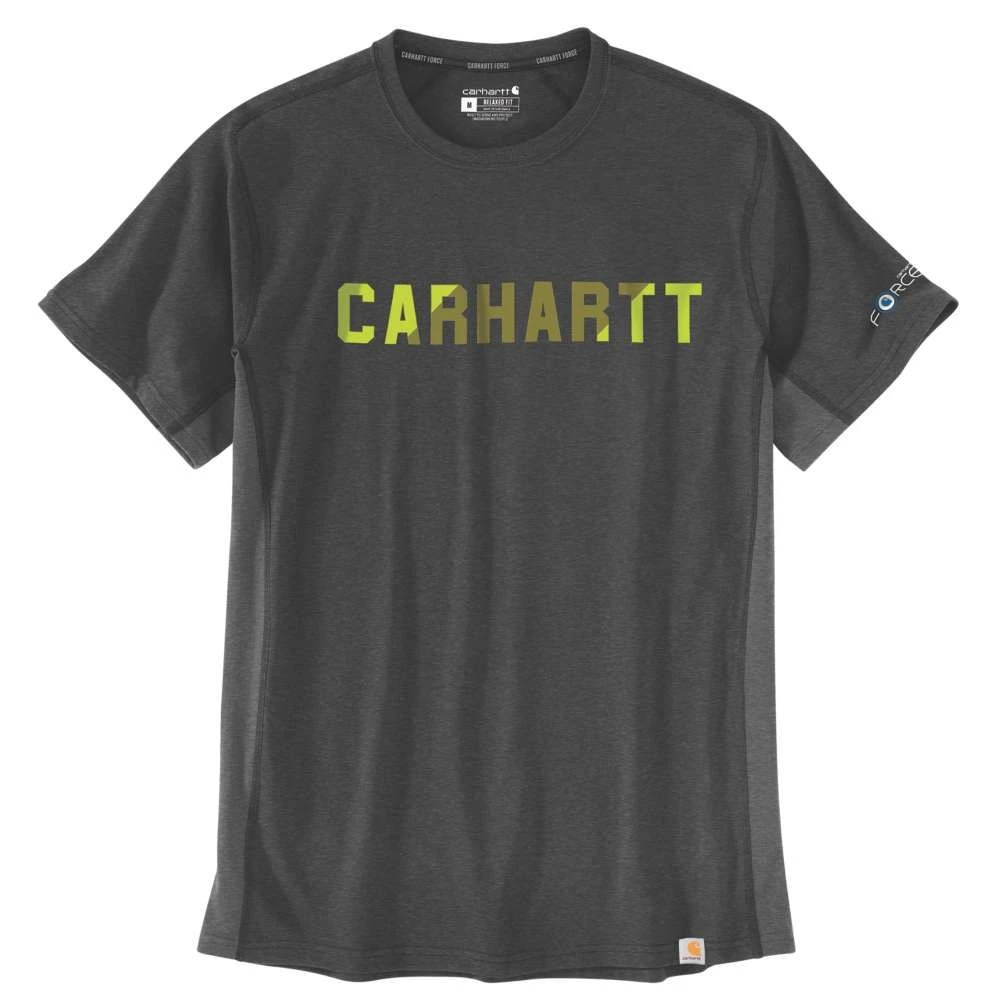 - Carhartt graphic on chest. Carhartt Force labelling on left sleeve· Carhartt label sewn on hem.