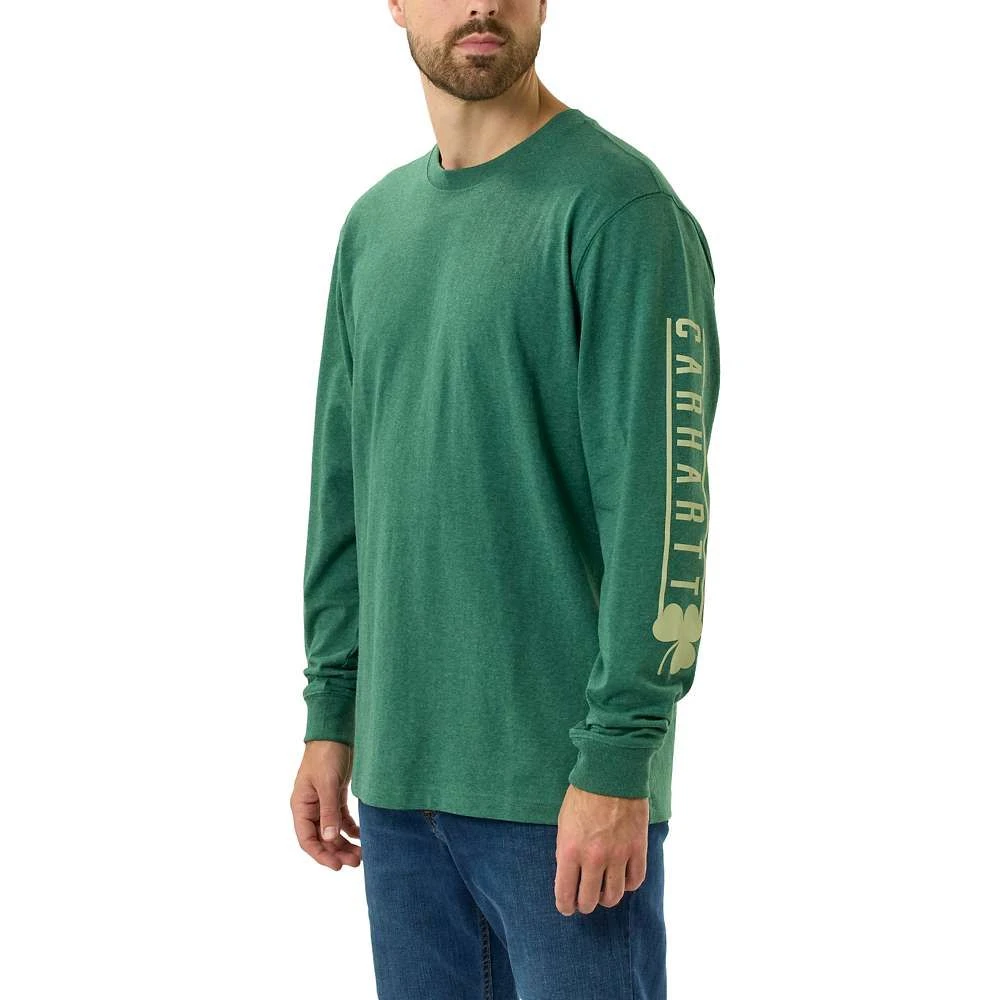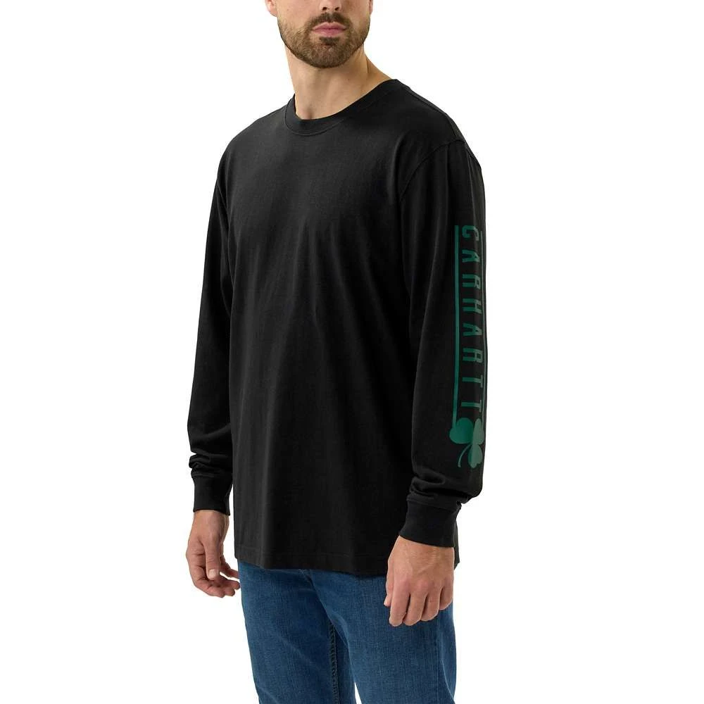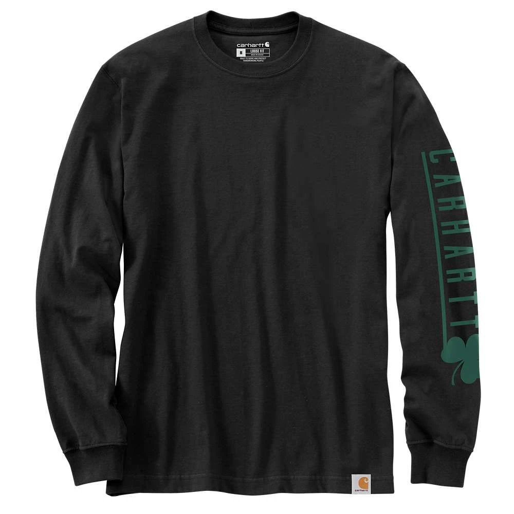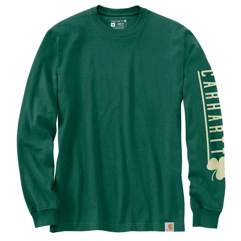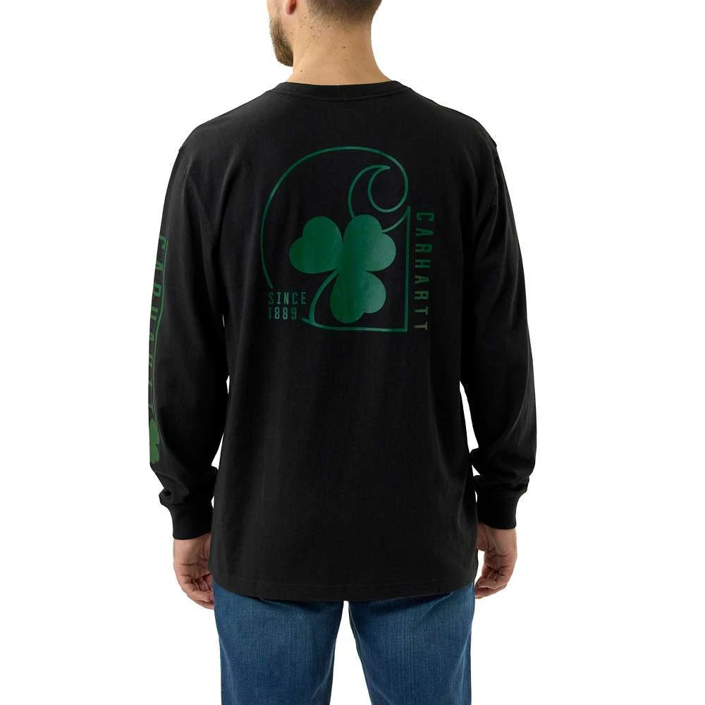 - Carhartt Shamrock graphic printed on back and left sleeve. Carhartt label sewn on lower front.