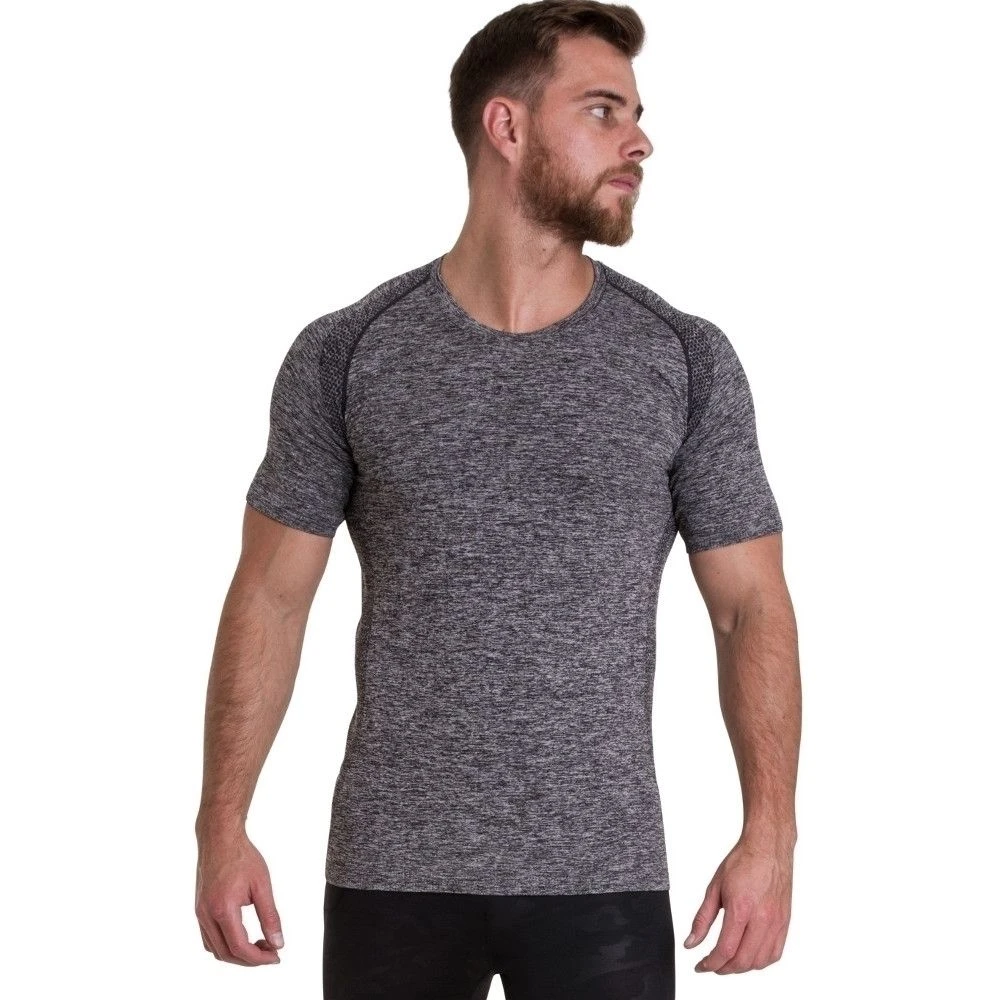 - Seamless, Wicking fabric, Long sleeves, Attractive embossed design, Ribbed hem and cuffs, Round collar, Stretch, Contrast stitching.