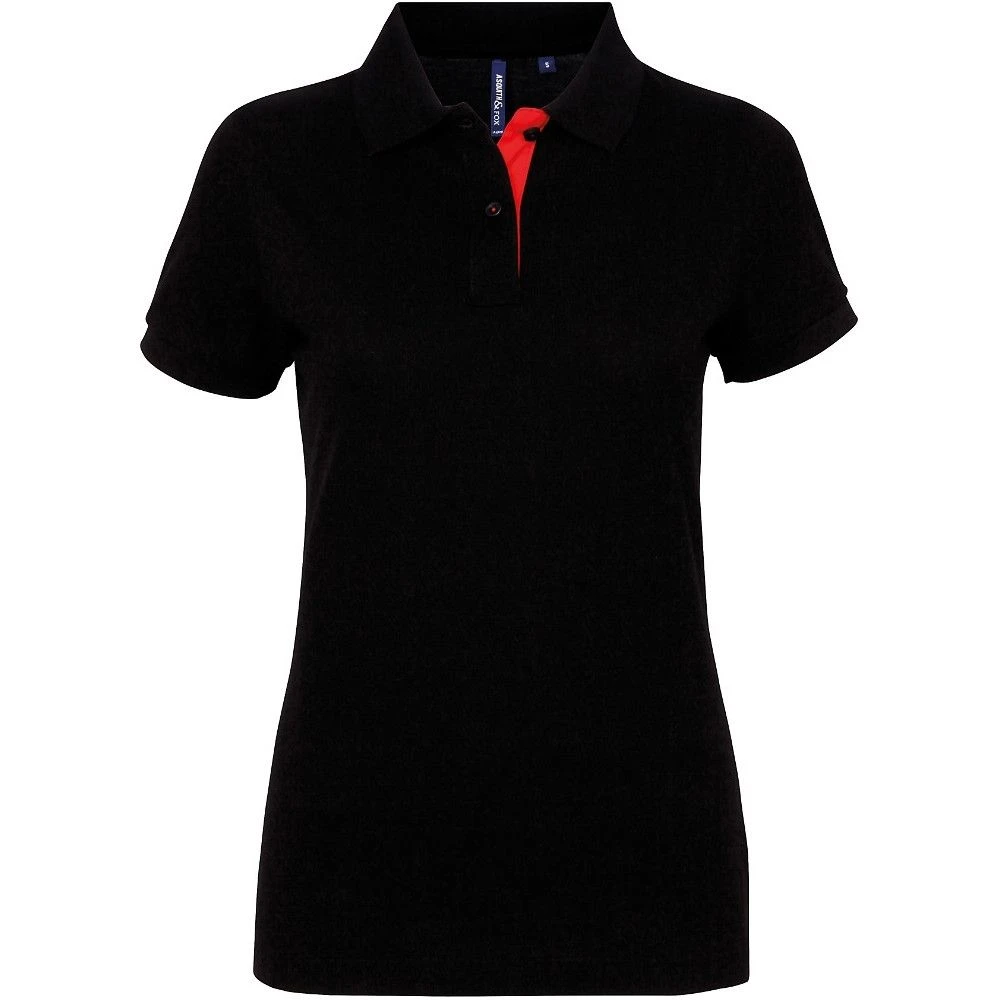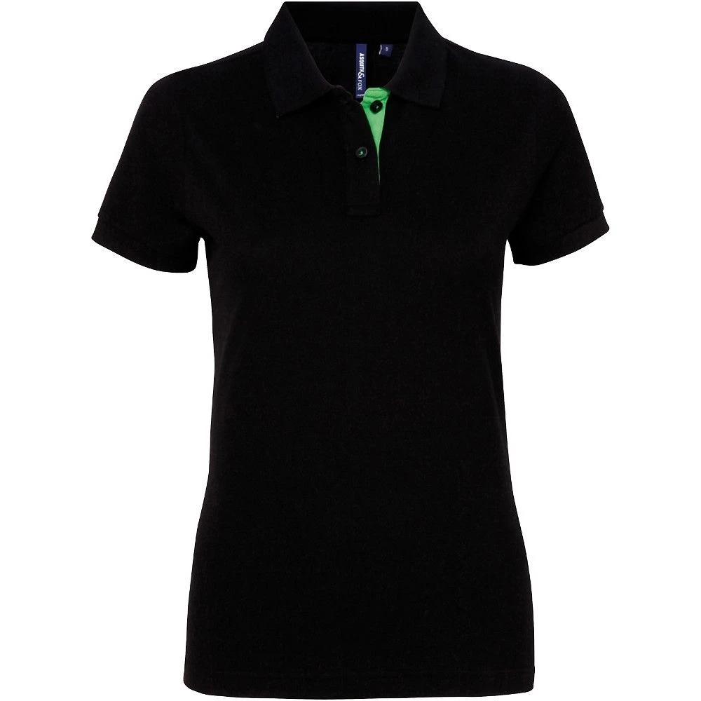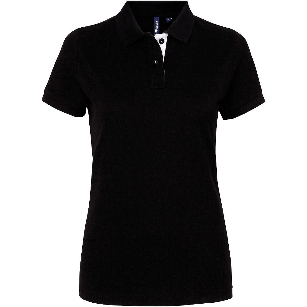 - Fitted polo for women with contrast collar and placket. Two contrast coloured buttons on placket.