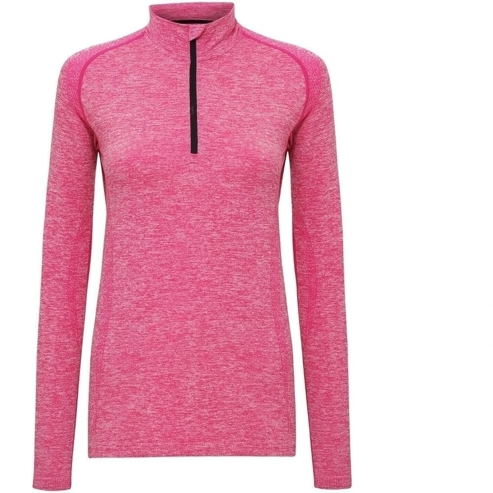 - Seamless, Wicking Fabric, 3/4 zip, Long sleeves, Contrast stitching, Attractive embossed print, Stretch, Ribbed cuffs and hem.
