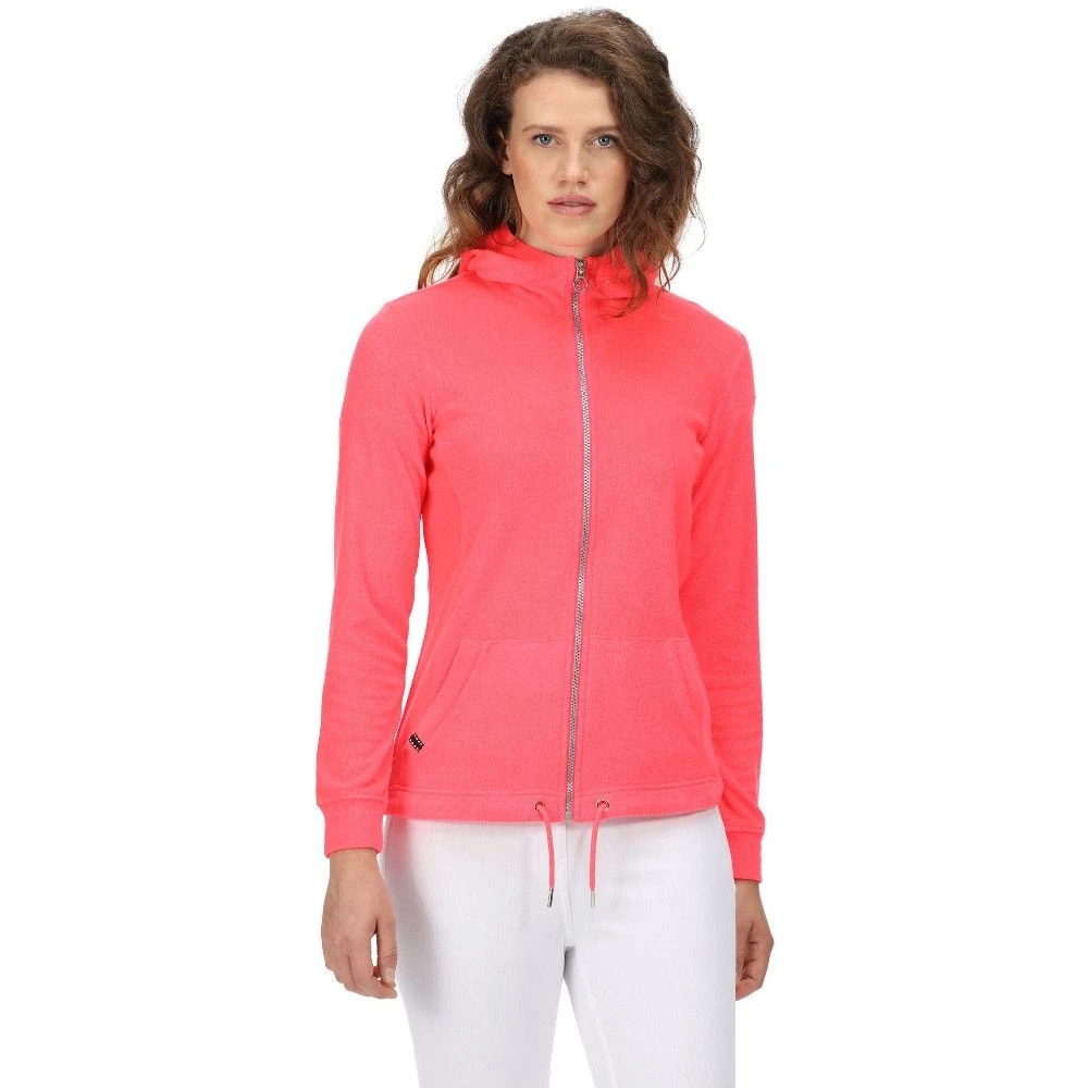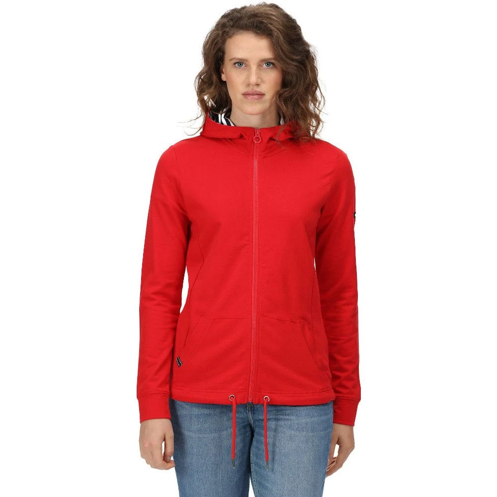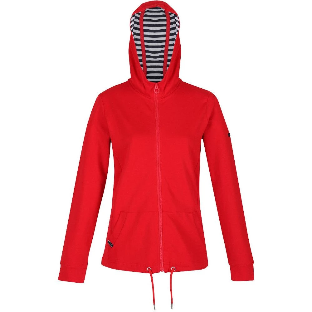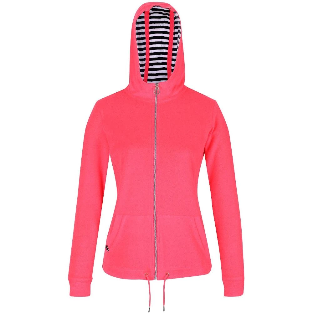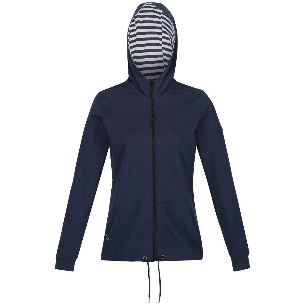 When the temperature drops, there’s nothing better than slipping into a jersey hoody. This Regatta Bayarma stripe hoody combines fashion and comfort. It features a full-length zipper with a kangaroo pocket at the front. Made from a blend of sustainable cotton and polyester, the women’s hoody promises warmth and moisture-wicking. Its grow-on hood with a drawcord hem gives you an adjustable and tight fit.