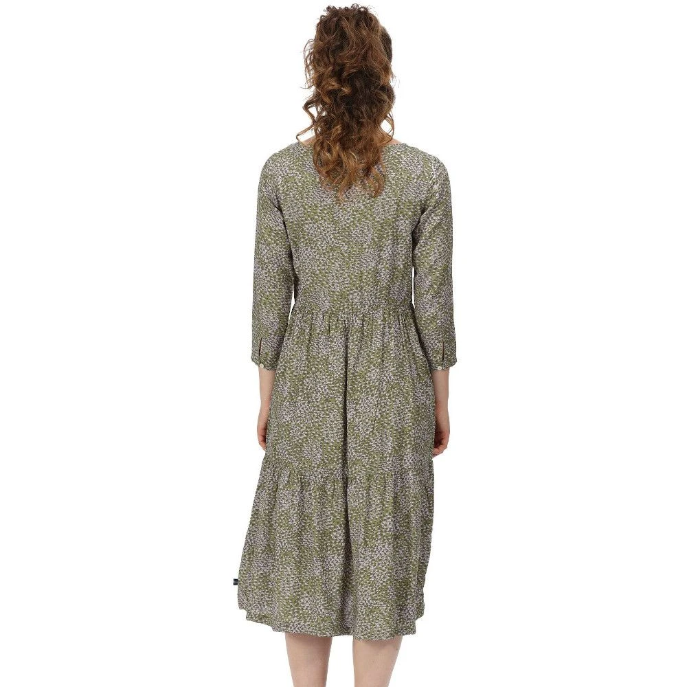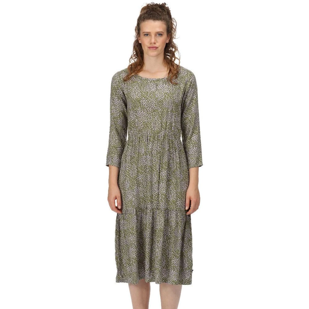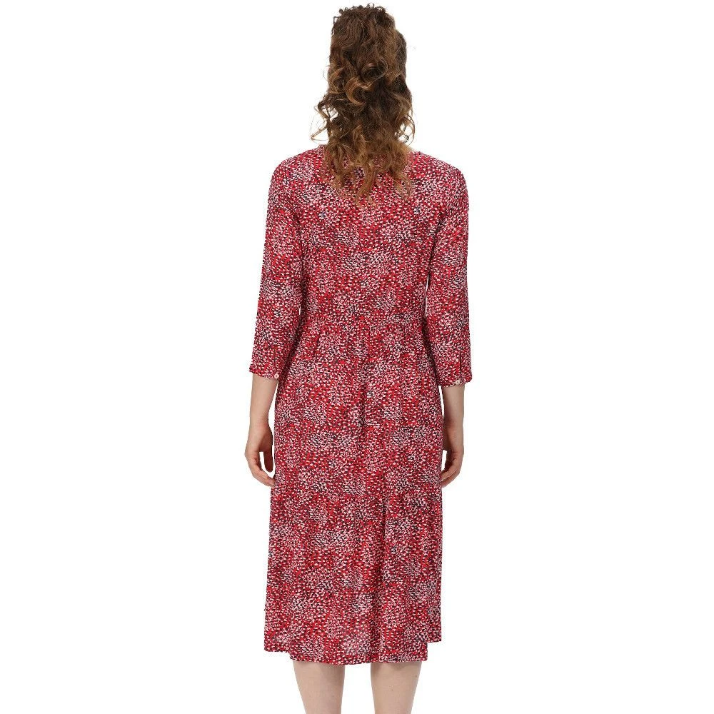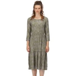 Regatta Briella is a beautiful floral printed sun dress for women. Made of purely woven viscose, the dress feels soft against the skin and drapes around you effortlessly. It has a round neckline, quarter sleeves, and a tiered skirt. The waistline and cuff are elasticised for a secure fit. Pair this Briella dress with your favourite bellies for a day-out with friends.