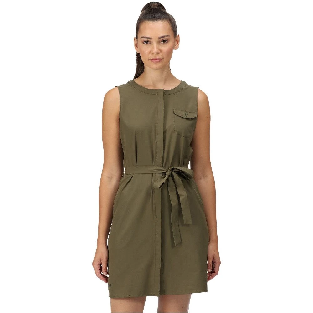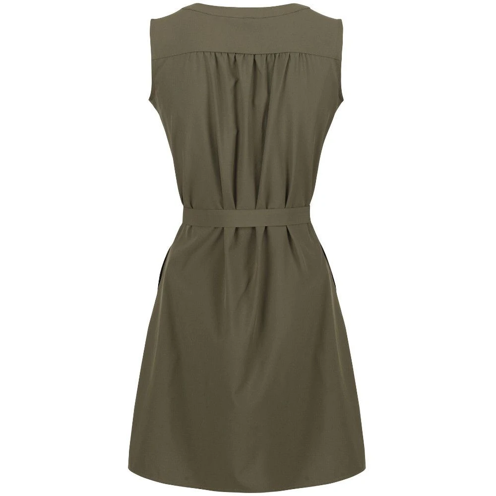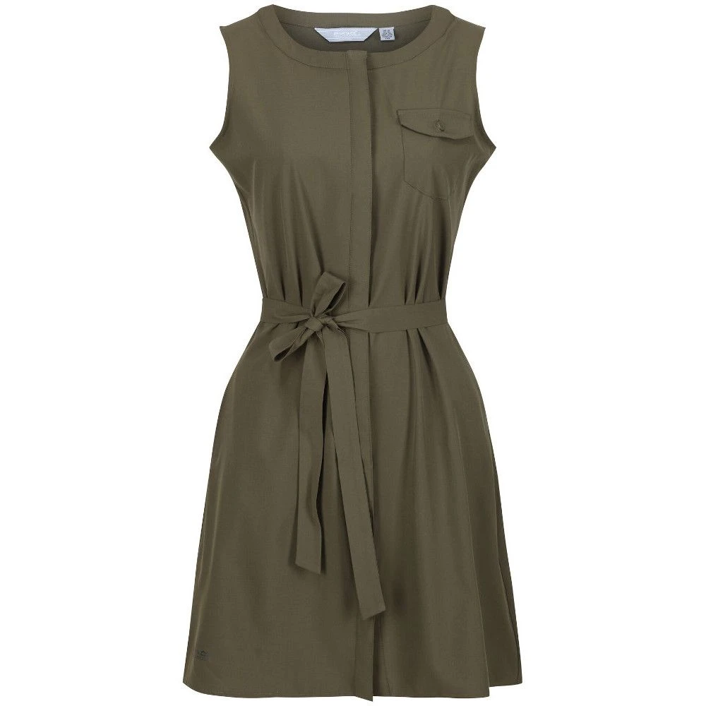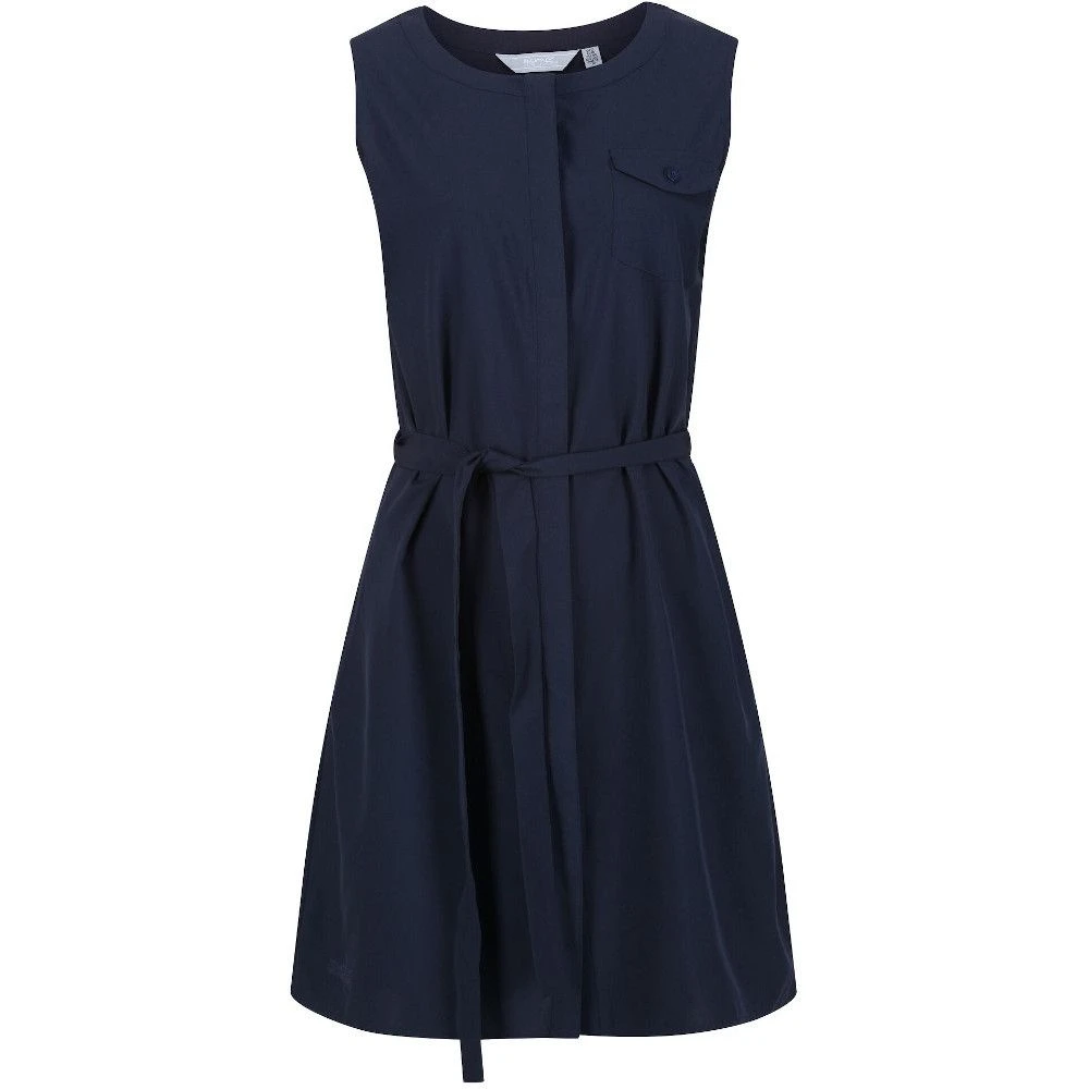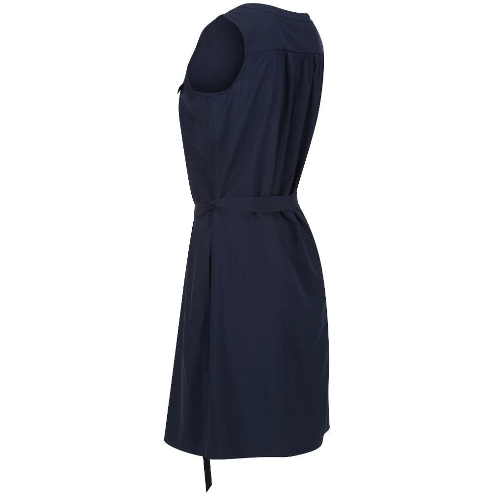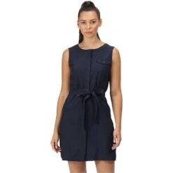 The Regatta Women’s Highton Active Stretch Water Repellent Dress is built with ISOFLEX technology that keeps the fabric actively stretchy. Built of 96% polyester, the dress also comes with 4% elasticity. Made using recycled fabric that comes from approx. 13 wasted plastic bottles, it proves to be sustainable. It’s water-repellent with a button fastening enclosure at the front. The tie belt at the waist adds a prominent shape. It has 1 chest and 2 side pockets.