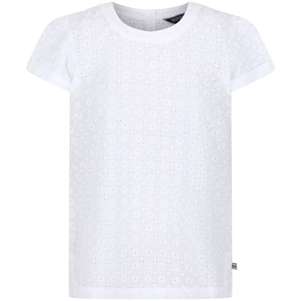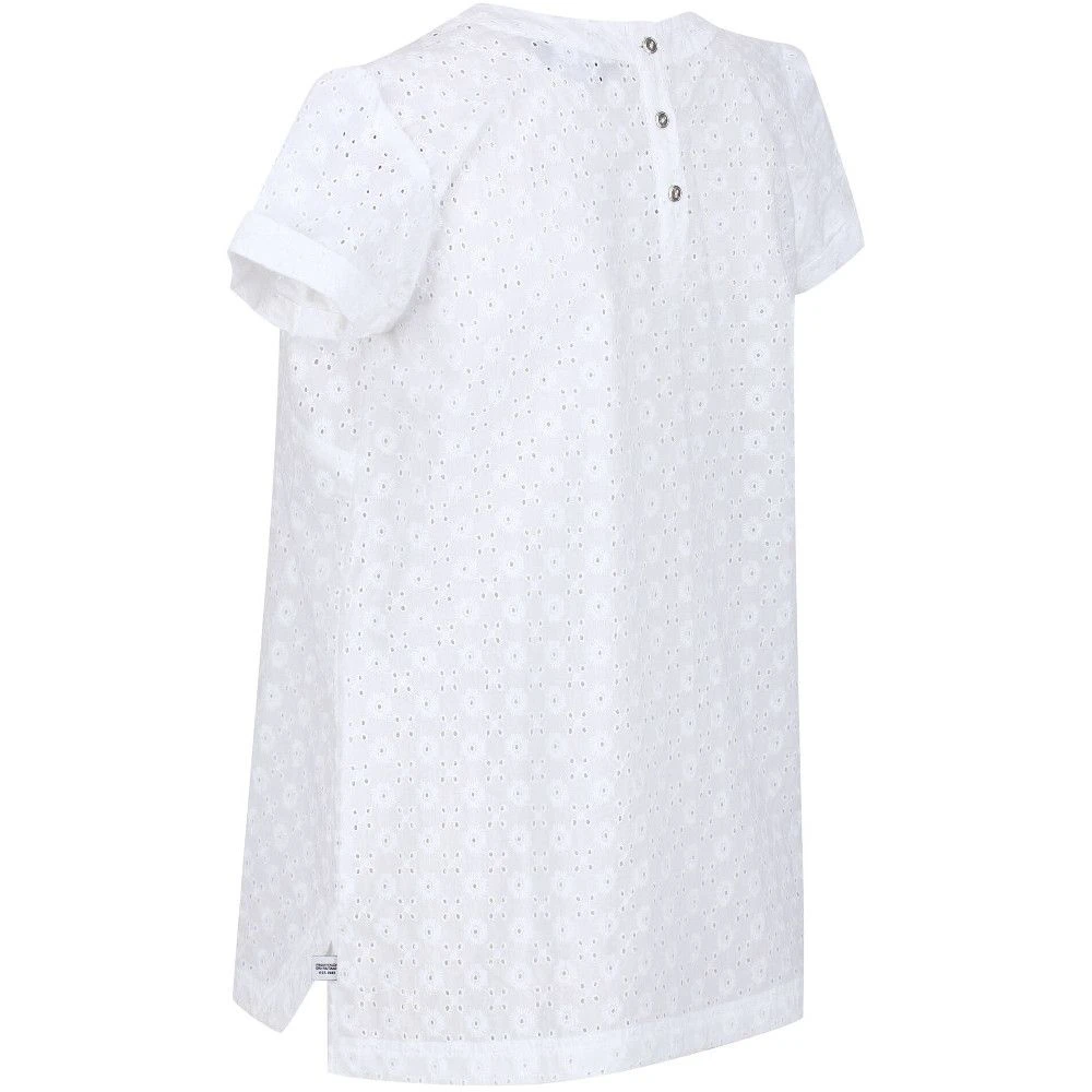 Designed for women, the Regatta Jaelynn T-shirt features an all-over broderie Anglais design that enhances the look and style. Made of Coolweave sustainable cotton, the T-shirt offers all-day comfort. The side vent detail offers air permeability, adding to the breathable performance. The T-shirt features a crew neckline with a short sleeve design and a straight hem. The button fastening on the back neck offers an easy pull-over style.