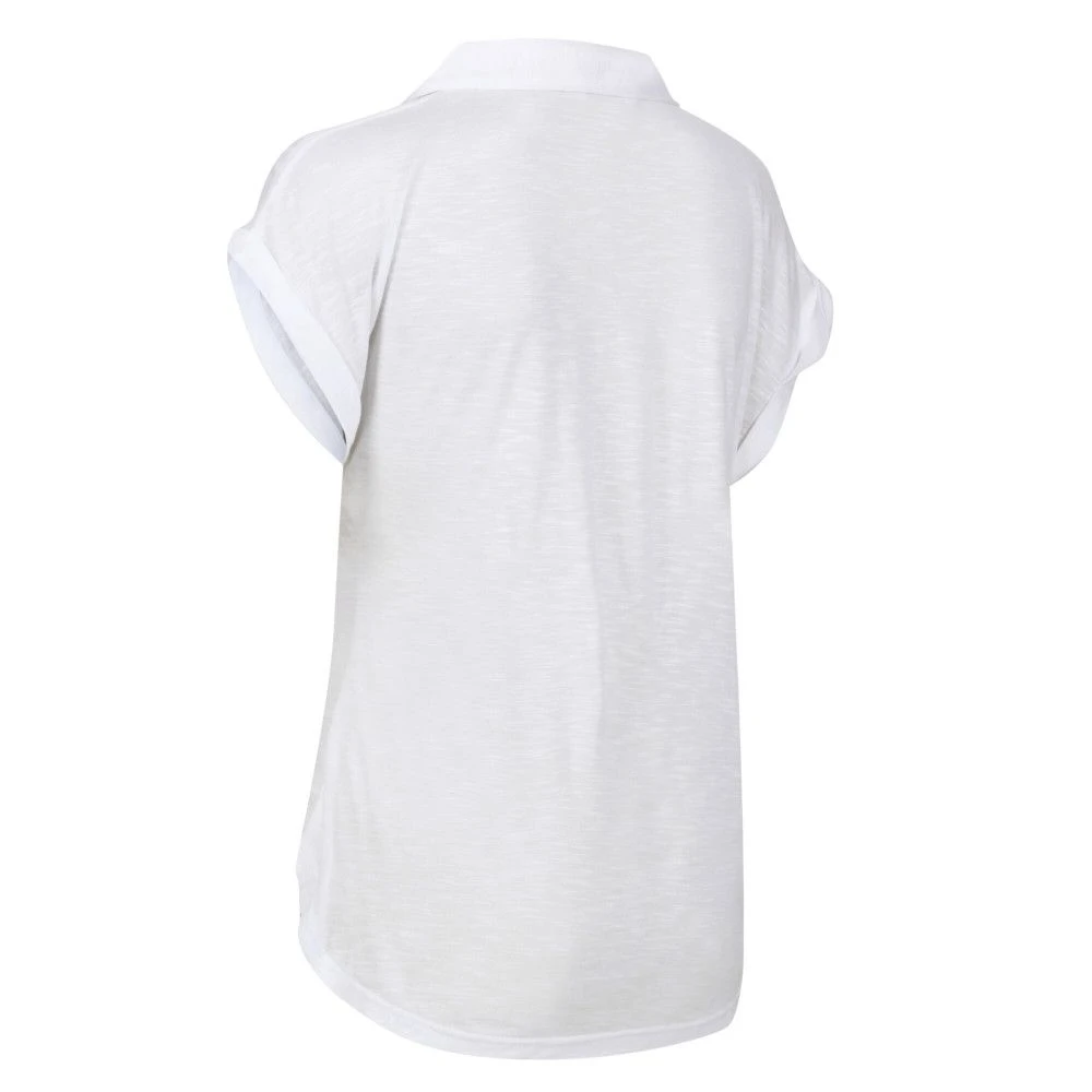 Make every move of yours count by wearing this Regatta Women’s Lupine Polo Shirt. It is cool, comfortable, and stylish so you can wear it to casual outings or a movie night. The shirt has a collared V-neckline with short sleeves and drop shoulders. It is made of pure viscose jersey fabric for durability, moisture-wicking, and breathability. Pair this polo with your favourite jeans and sneakers to complete the ensemble.