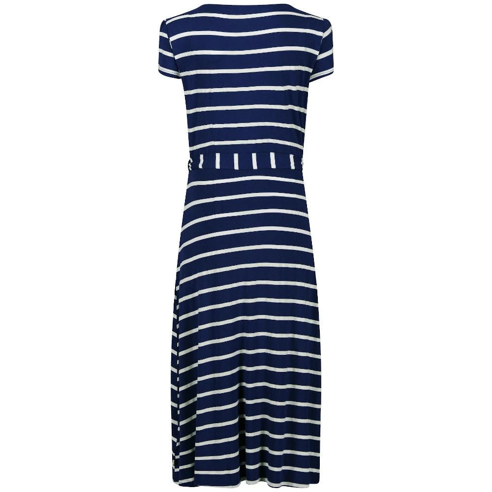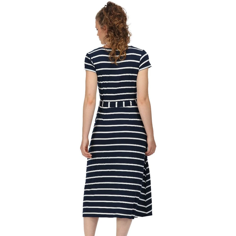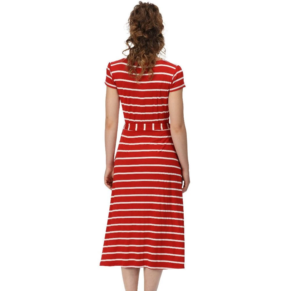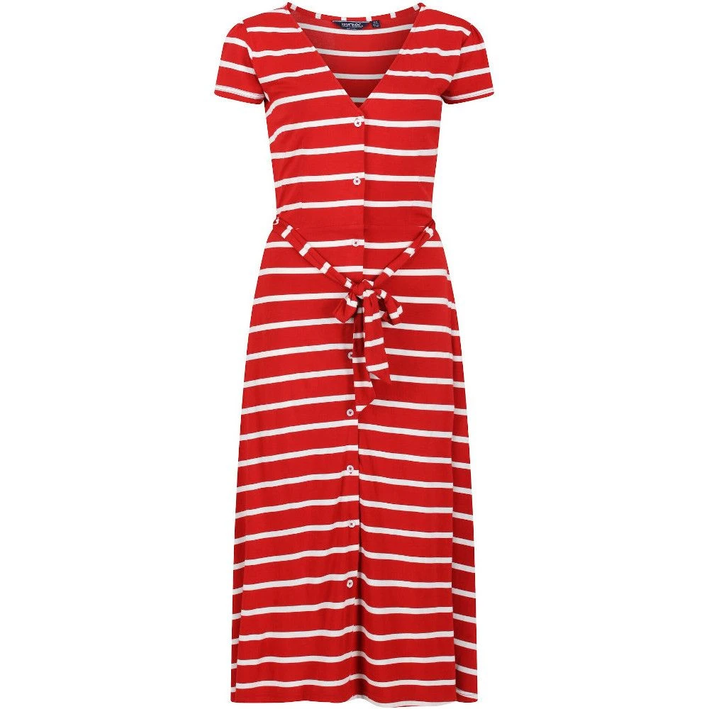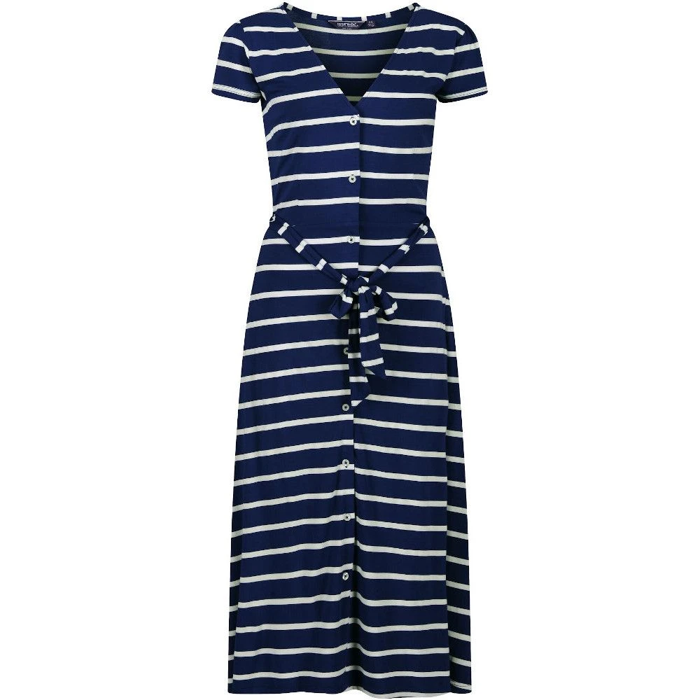 Slip into this trendy Regatta Maisyn sun dress. A perfect pick for casual dates, this women’s dress falls at the mid-length. It is made from a blend of stretchable viscose and polyester to wick away moisture and give you a comfortable fit. The sun dress features a tie-belt at the waistline and a secure button fastening at the front.