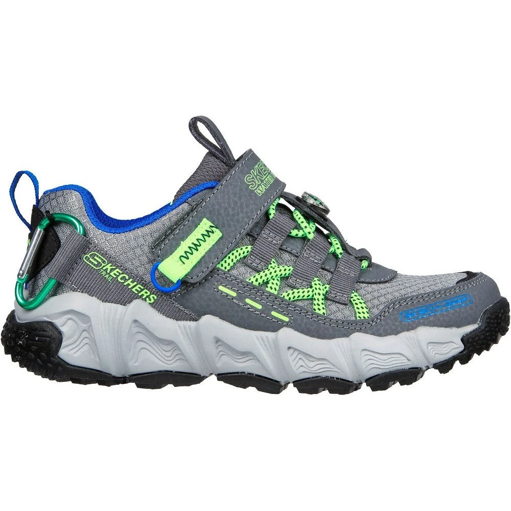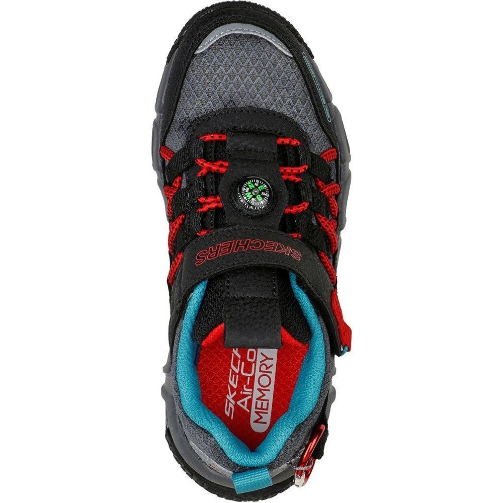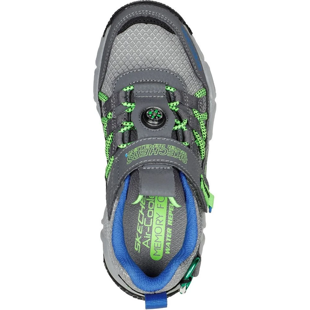 - Skechers Air-Cooled Memory Foam comfort insole. Stretch laces with an attached compass, carabiner and adjustable instep strap.
