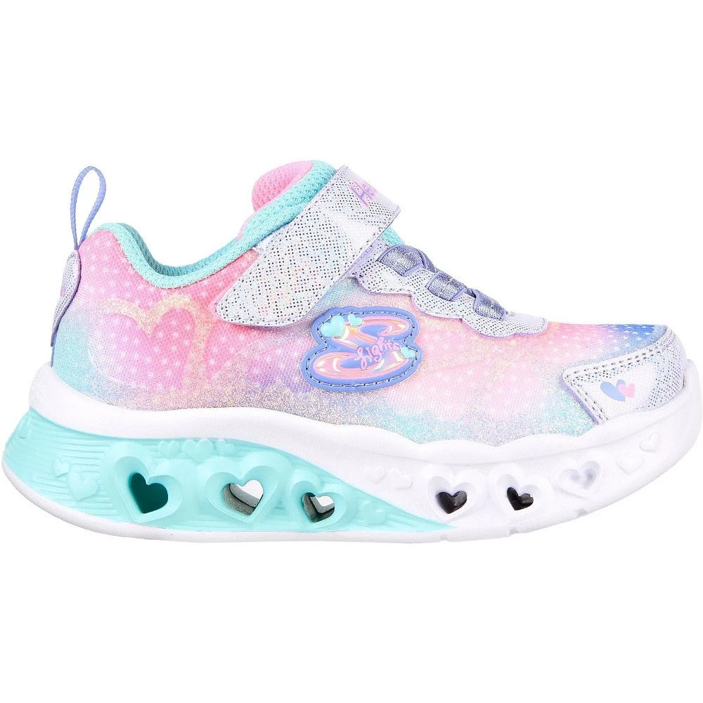 Skechers Girl’s Flutter Heart Lights Simply Love Trainers are the perfect footwear for girls. Hook and loop strap with on/off light switch. The athletic trainers have a synthetic glitter heart overlay, midsole cushioning, and 3-D carved light-up hearts. For traction, the outsole is made of flexible rubber. The slip-on design with a flexible lace up front has a hook and loop strap that can be switched on and off, as well as an ombre fabric shirt with a synthetic glitter heart overlay.
