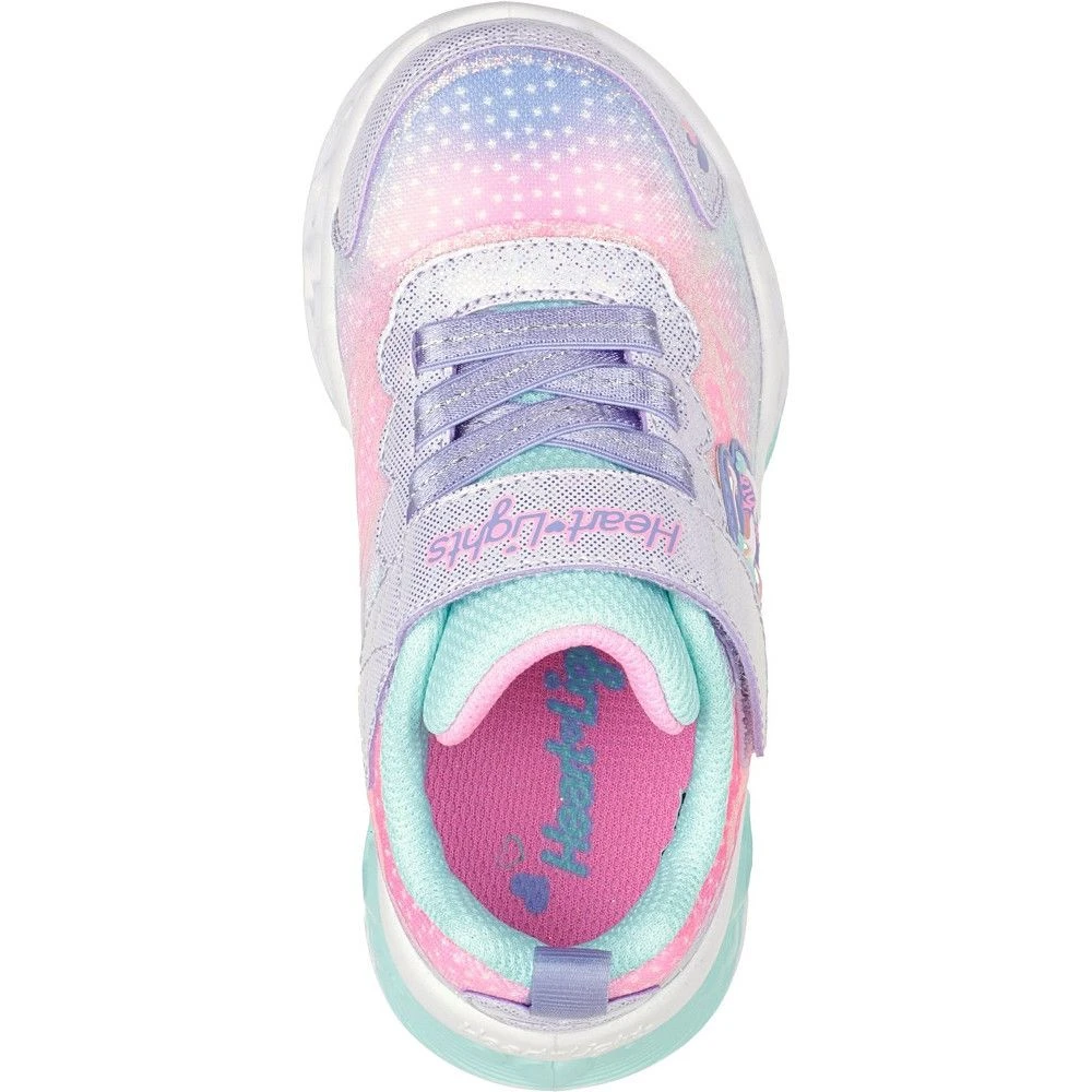 - Hook and loop strap with on/off light switch. Ombre print fabric upper with synthetic glitter heart overlay.
