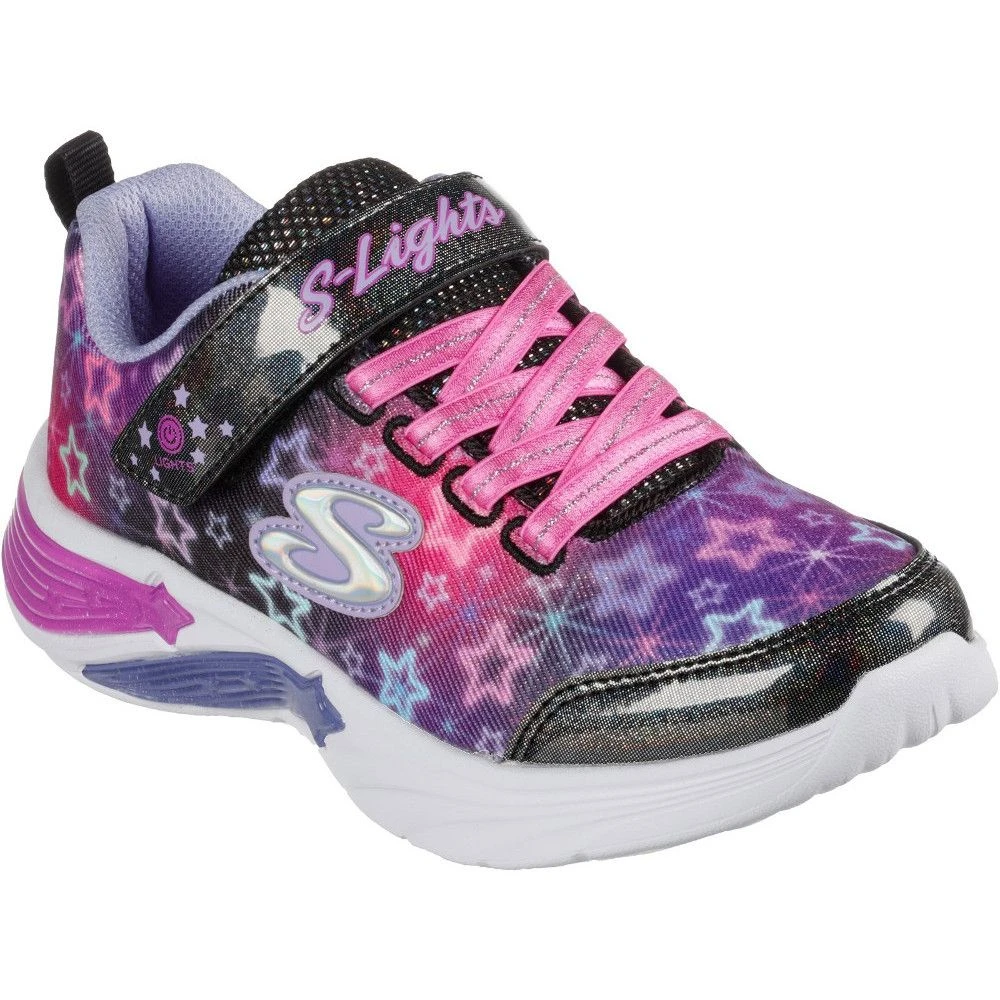 Give a sporty look to your footwear with the Skechers Star Sparks trainers. Designed for adorable girls, the shoes have a slip-on style with hook and loop closure as well as stretch laces. Their outsoles are flexible and enhance the traction. Skechers shoes with synthetic upper feature a sparkle star print and an on/off light switch. The logo detailing further enhances the look.