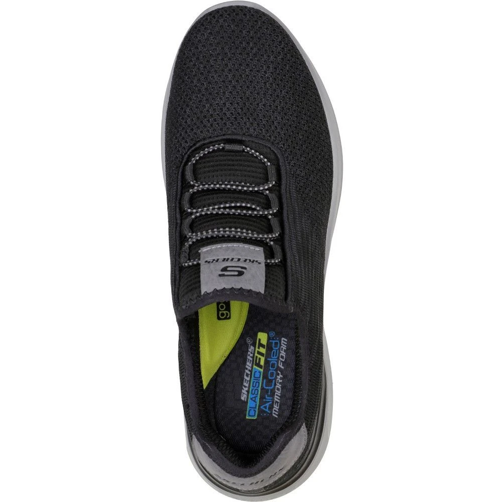 - Skechers Air-Cooled Memory Foam cushioned comfort insole. Skechers Goga Mat Arch cushioning for added support.