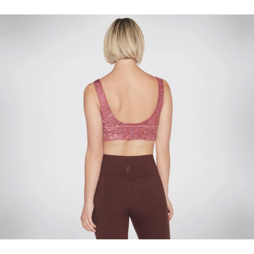Workout in wild style with the Skechers GOSCULPT Leopard Longline Bra. This lovely sports bra features the breathable Skechers GOSCULPT knit fabric which is flexible and moisture wicking, and has a semi-sweetheart V-neck line and a scooped back. There are also Air-Cooled Memory Foam removable cups and medium light support.Â