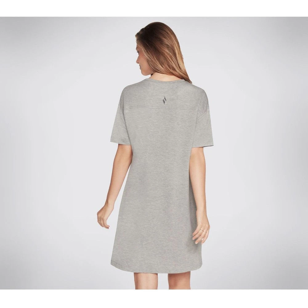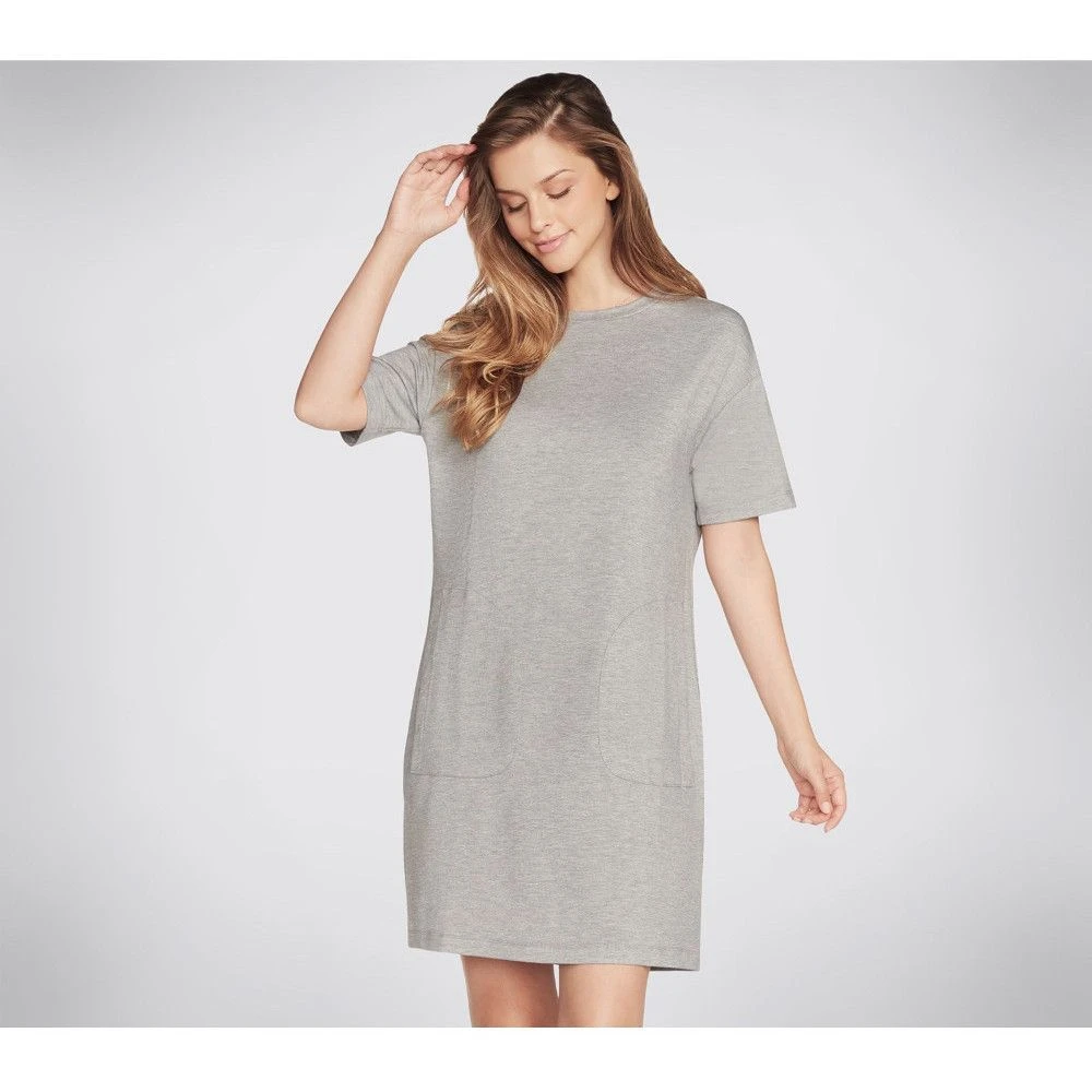 The Skechers GOLOUNGE Wear SKECHLUXE Mindful dress may be the perfect mix of style and easy-wearing comfort. This t-shirt style dress has a crewneck and short sleeves, and also front patch pockets. You could be lounging around at home or out in the sunshine, pair with canvas trainers for a fun, summer look.